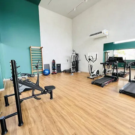 Guests can prepare their own meals in a kitchen equipped with a refrigerator. Maintain your exercise routine effortlessly at a fitness room offered by the apartment.